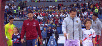 双方球员步入球场,大战即将打响