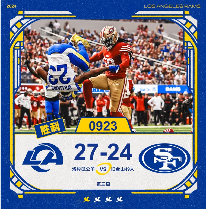 詹姆斯现场观战洛杉矶公羊,对镜头做出戴皇冠手势南柯一球 @懂球帝2024-09-23 11:40北京时间9月23日上午4:25,NFL球队洛杉矶公羊在SoFi体育场主场对阵49人。洛杉矶湖人球星詹姆斯也来到了现场观看这场橄榄球比赛,大屏幕还给了他个人介绍镜头。洛杉矶公羊以最终以27-24的成绩战胜旧金山49人,拿下新赛季首胜。展开更多