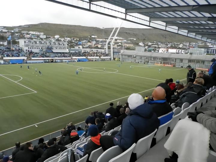 由于原本的主场不符合欧足联要求,克拉克斯维克不得不暂时来到首都托尔斯港的国家体育场作战。这是整个岛上最大的体育场,由于法罗群岛特殊的地理环境,从看台上还能望到山坡上星罗棋布的各色房屋。时常降临的暴风天也是这儿特殊的气候,角旗杆在强风下摇摇欲坠,球员的球衣在风中凌乱,球迷的助威旗帜也被风吹起。