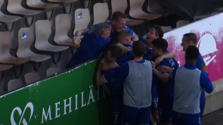 去到芬兰客场,意图掌握主动的克拉克斯维克又是由阿尔尼一记大力抽射直窜死角,进球后球员们纷纷涌向场边,与两位手拿啤酒的远征军球迷一同拥抱庆祝,在异国他乡上演如此场面,不禁令人动容。