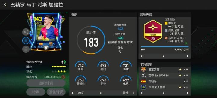 2015年夏窗,加维转会加盟巴塞罗那,2021年升入巴萨一线队后,加维凭借出色的表现荣膺2022年科帕奖和金童奖。游戏中,加维推出的像素大作战球员卡配备了指南针天赋,对他的中场组织能力有所增强,搭配高级油炸丸子花式,持球稳定性也有显著提升。