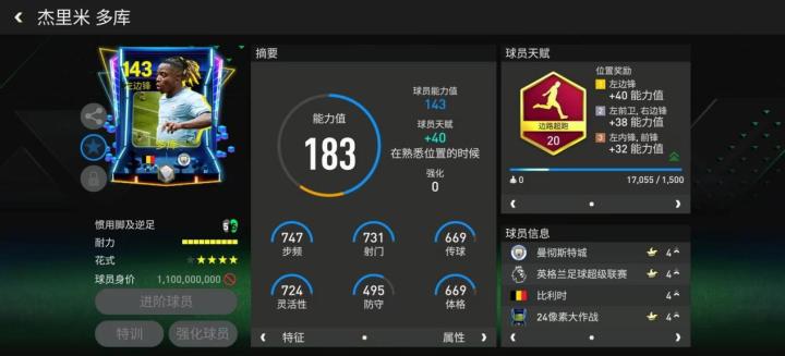 年仅22岁的比利时新星,多库已然是曼城不可或缺的一员边路大将,如今在比利时国家队,他也开始变得举足轻重。像素大作战系列多库配备了边路超跑天赋,对他的速度、盘带等关键数据有所提升,搭配高级油炸丸子花式,他是一名顶尖的持球边锋。
