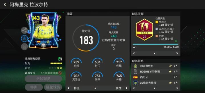 曾效力于曼城的拉波尔特在沙特联赛仍旧保持着火热的状态,今年夏天他就作为主力后卫跟随西班牙夺得了欧洲杯冠军。像素大作战系列拉波尔特也配备了后卫常见的叹息之墙天赋,这让他的阵地防守表现更加稳定。