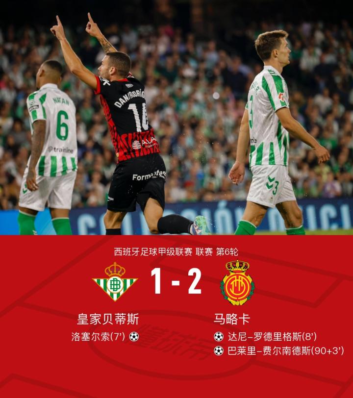 马略卡2-1逆转贝蒂斯,费尔南德斯、达尼-罗德里格斯破门