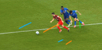 第45+1分钟,马莱莱禁区内甩头攻门,皮球顶偏