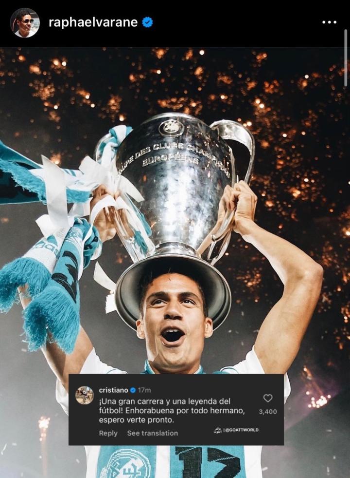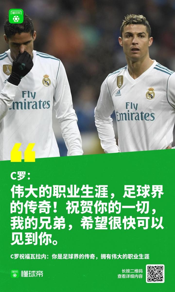 C罗祝福瓦拉内:你是足球界的传奇,拥有伟大的职业生涯LaPulga @懂球帝2024-09-25 22:4031岁的前法国国脚瓦拉内今日宣布退役,他的昔日队友C罗送上了祝福。职业生涯中,瓦拉内曾与C罗在皇家马德里和曼联做过俱乐部的队友。在瓦拉内宣布退役后,C罗留言送上了祝福,他发文写道:“伟大的职业生涯,足球界的传奇!祝贺你的一切,我的兄弟,希望很快可以见到你。”效力皇家马德里期间,瓦拉内与C罗一同赢得了无数的荣誉。展开更多