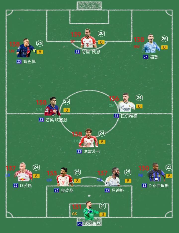 拜仁套有个很大优势,每年的UCL赛季里,稳定有会挺多便宜好用的拜仁球员,这就是拜仁套常年性价比高的主要原因。今年的拜仁套,23U、DC、UT三个赛季合力,让全位置都可以用上便宜的好卡。
