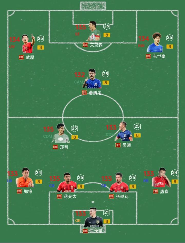 这里面除了韦世豪被精选外,其他10位随时可以在转会市场上买到,加起来用不了10亿BP。这套国足阵容,没有太薄弱的环节,中锋和后卫线尤其强力,加上堪比门线是22U埃德森的CB11王大雷,采用防守反击战术,能大幅提升实战得分率。