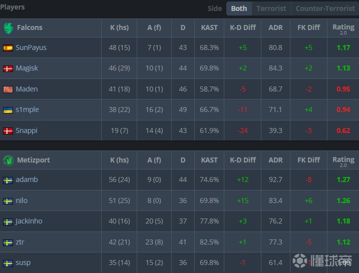 值得一提的是,在今年3月s1mple就曾以步枪手的身份短暂租借加盟Falcons,并与Metizport进行了一场BO3的比赛。