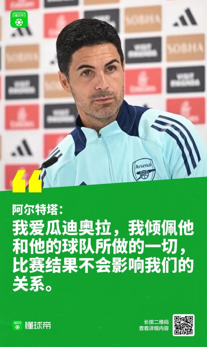 阿尔特塔:我爱瓜迪奥拉,我们的关系不会被比赛结果妨碍