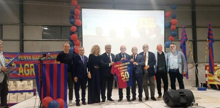 《世界体育报》报道称,当地时间周五,巴萨俱乐部主席拉波尔塔出席了阿格拉蒙特及周边地区巴萨球迷协会成立50周年庆典,陪同他的是高管约瑟普-伊格纳西-马西亚。