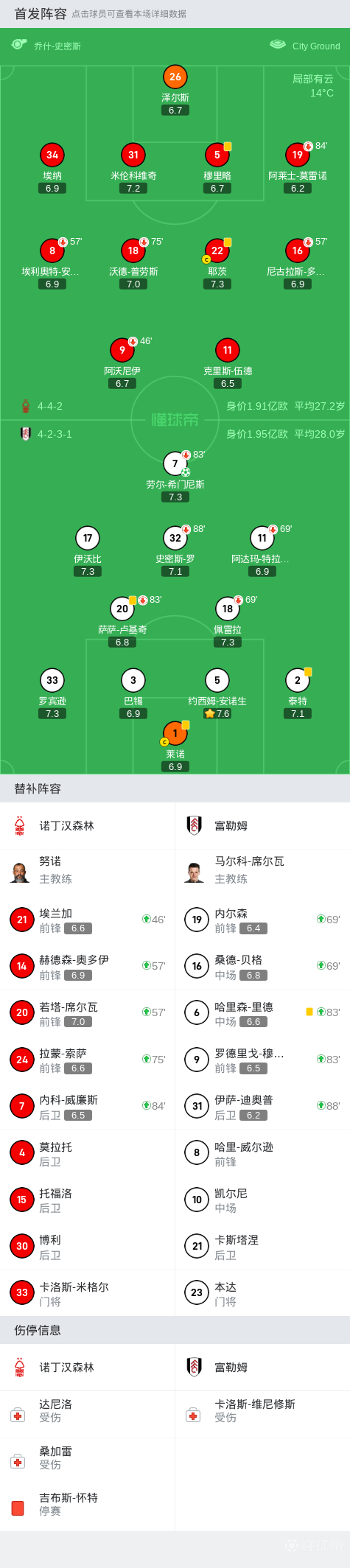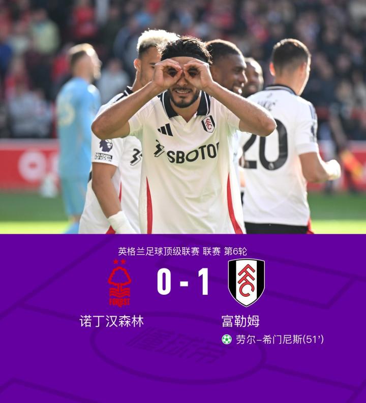 诺丁汉森林0-1富勒姆,劳尔-希门尼斯点射