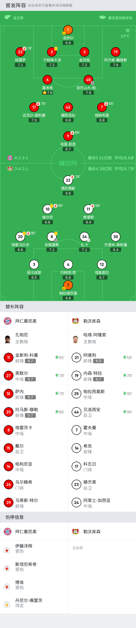 剑南春|拜仁1-1勒沃库森,帕夫洛维奇天外飞仙,凯恩伤退