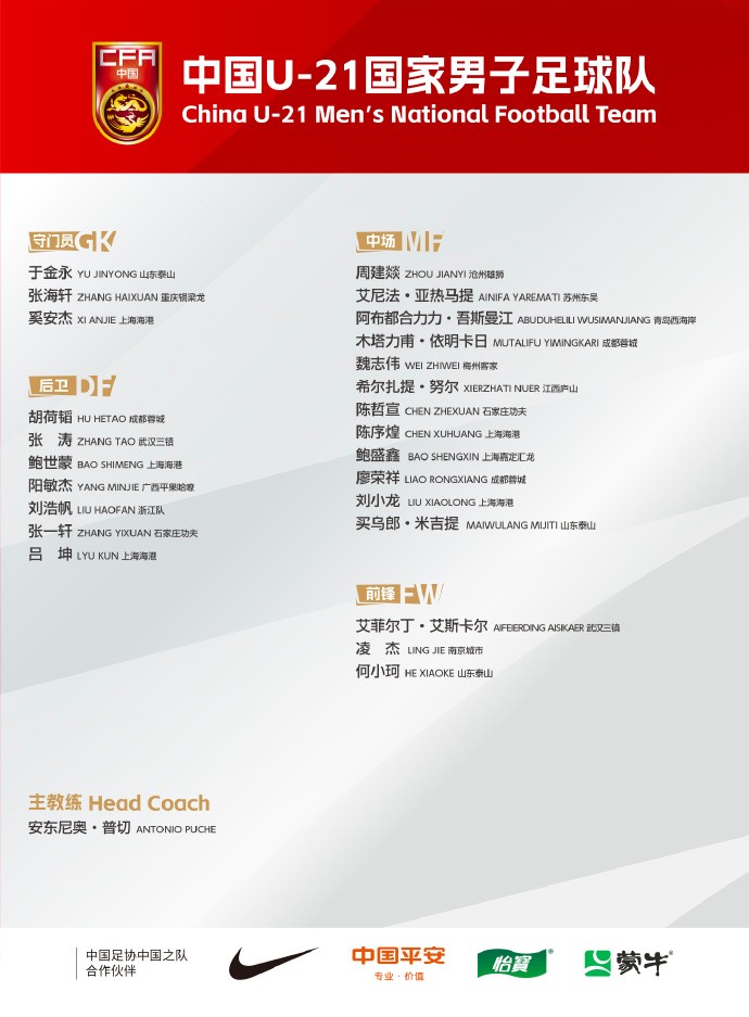 9月29日,国足公布了新一期U21的大名单。