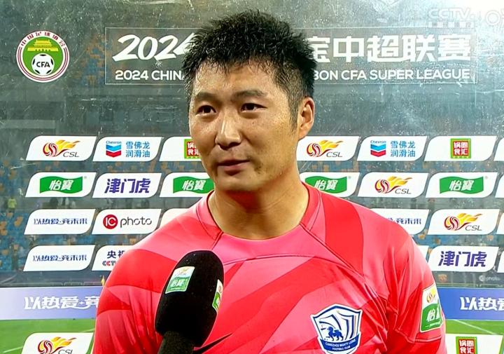 北京时间9月29日晚,中超第27轮,沧州雄狮在客场2-3不敌天津津门虎。赛后,沧州雄狮门将韩镕泽在场边接受了媒体的采访。