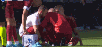 第13分钟,曼奇尼受伤,随后经过治疗可以继续比赛