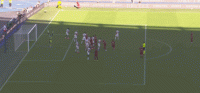 第17分钟,佩莱格里尼任意球攻门,造成约罗宁脱手