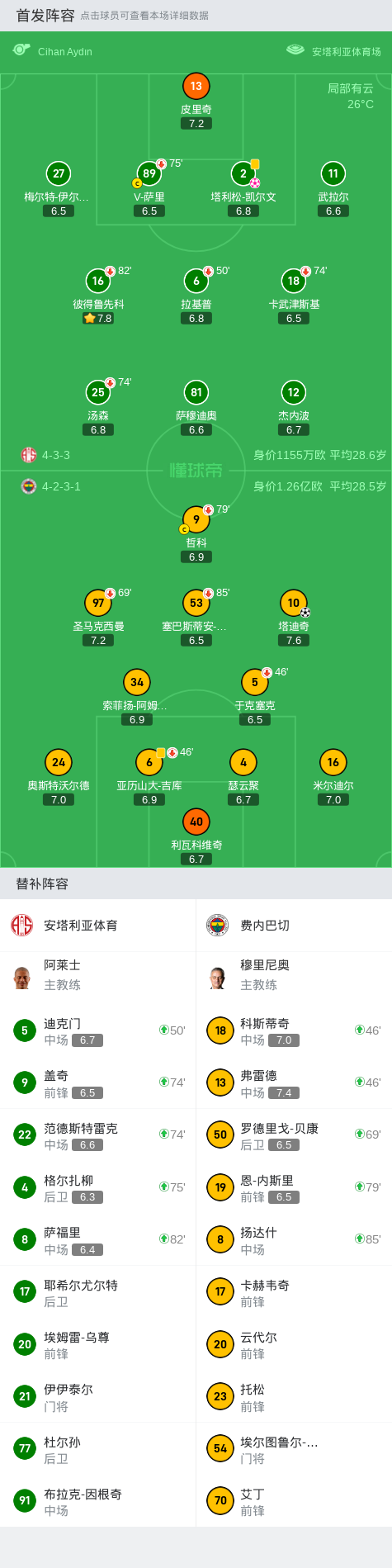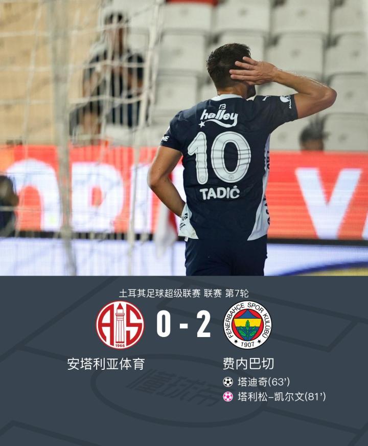 费内巴切2-0安塔利亚体育,塔迪奇破门,塔利松-凯尔文乌龙