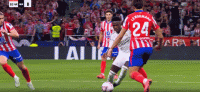 第90+7分钟,补时绝平,科雷亚前插撞射破门,马竞1-1