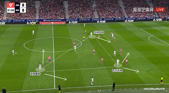 当姆巴佩缺阵时,皇马锋线力量不足,中场球员需要频繁插上,通过大范围的跑动和穿插来搅乱对手防线,寻找射门机会。贝林厄姆要在巴西双星身边扮演“中锋”,莫德里奇和巴尔韦德频繁地在中场和锋线之间穿梭,这对球员们的体能提出了很高的要求。