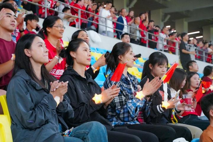 9月29日晚上,在成都蓉城主场对阵梅州客家的比赛现场,王思雨等奥运健儿领唱了国歌。