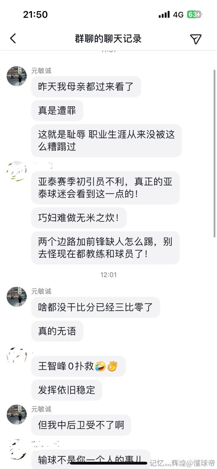 疑似亚泰后卫元敏诚在粉丝群不满:一输球就保护外援也是醉了