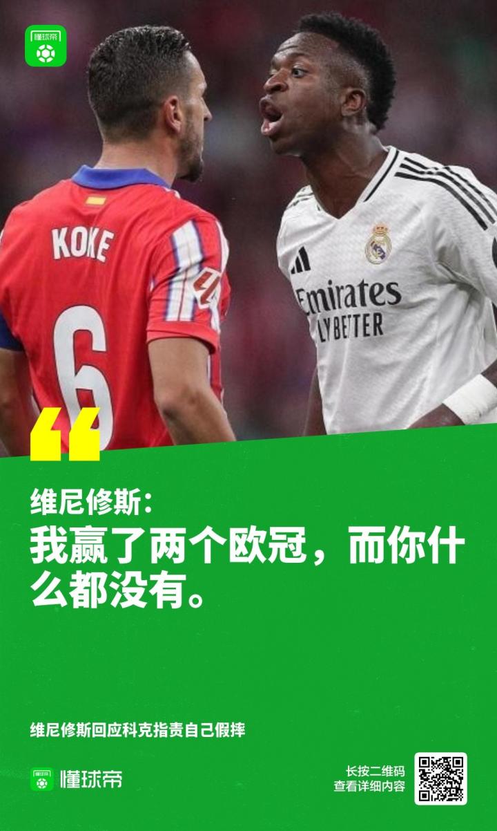 科克指责维尼修斯假摔,后者:我赢了两个欧冠,你什么都没有
