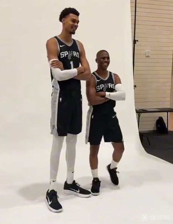 身高1米74的河村勇辉和2米21的扎克-伊迪合照上演身高差,复刻博格斯和马努特-波尔的经典照,值得一提的是,马刺此前拍摄定妆照时,保罗和文班亚马也曾拍摄相同主题的照片。