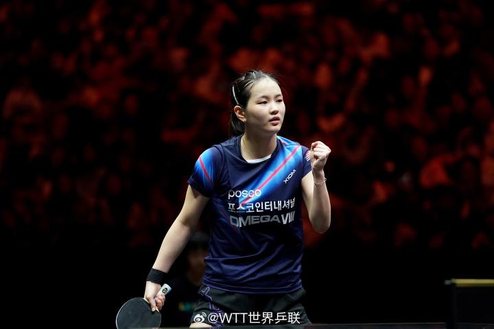 10月1日,2024年WTT中国大满贯女单1/16决赛,韩国选手金娜英让二追三逆转日本选手平野美宇。