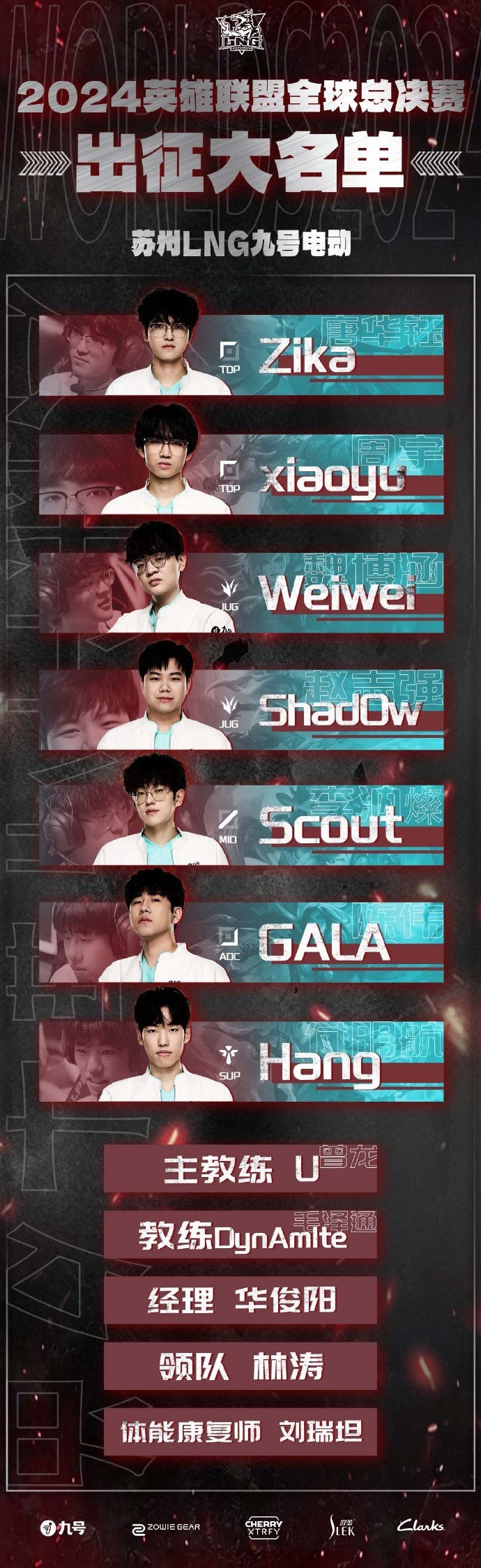 麒麟向世界!LNG官宣S14出征海报&出征大名单:Scout在列尼古拉约基奇2024-10-01 23:41北京时间今日,LNG九号电动电子竞技俱乐部在官方发布了S14出征海报及本次赛事战队的大名单,Scout在列。LNG官方配文写道:“每一次抵达的远方,都是梦想的所向;每一场全新的征途,都是勇敢者的奔赴。2024,麒麟向世界!欧洲,我们来了。”LNG大名单展开更多