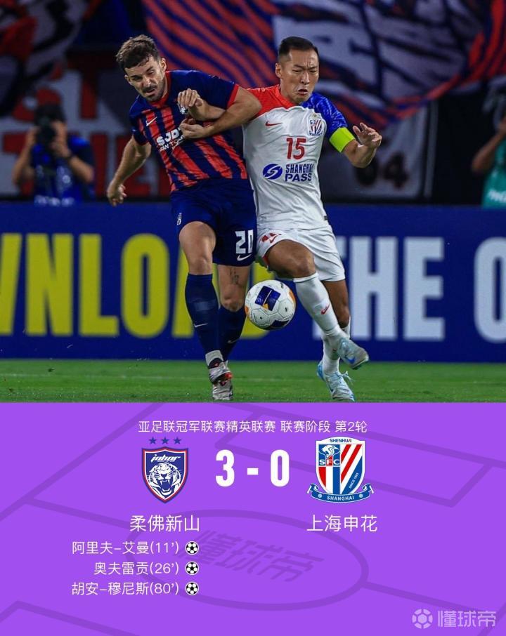 【中超球队亚冠两连败!申花全场0射正0-3柔佛新山,特谢拉伤退】