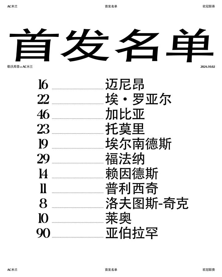 🆚️勒沃库森,首发出炉!