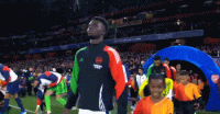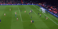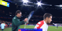 第33分钟,加布里埃尔一对一防下埃梅里,和球迷激情互动