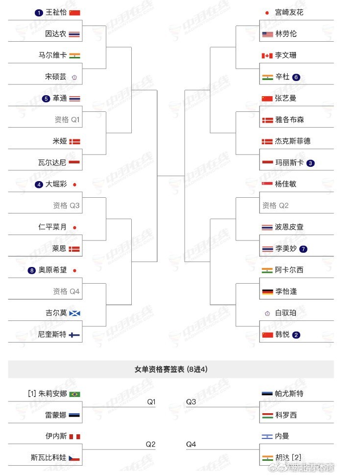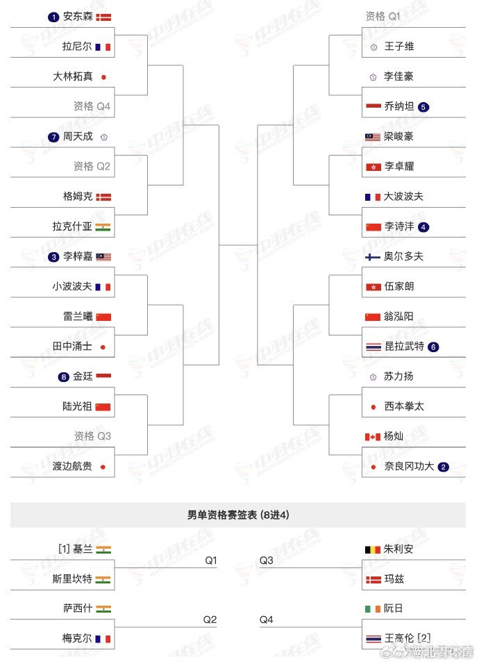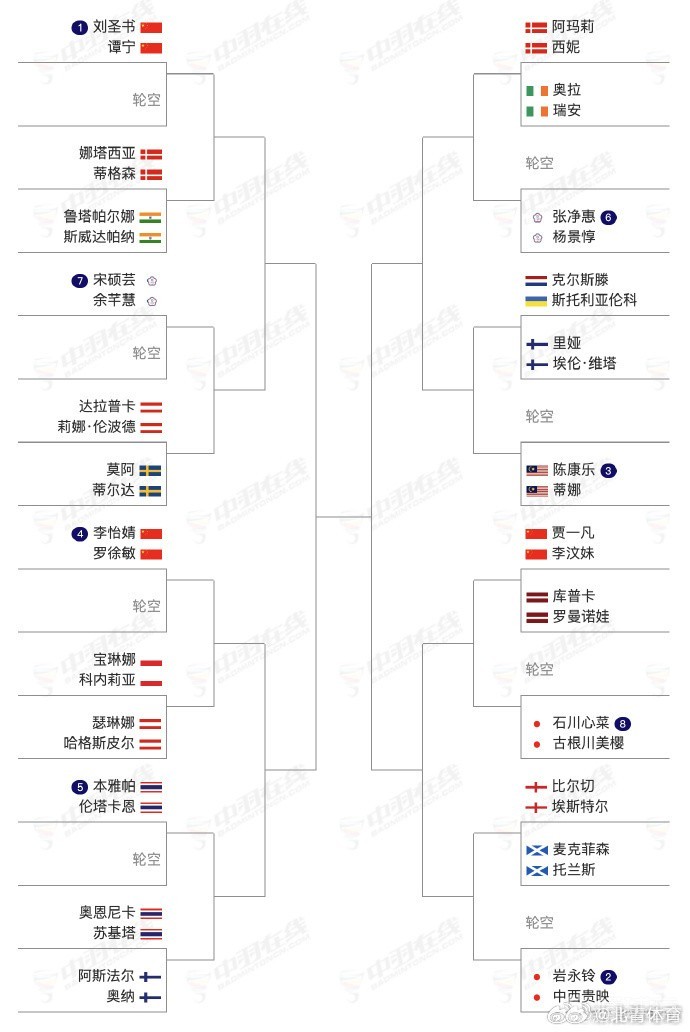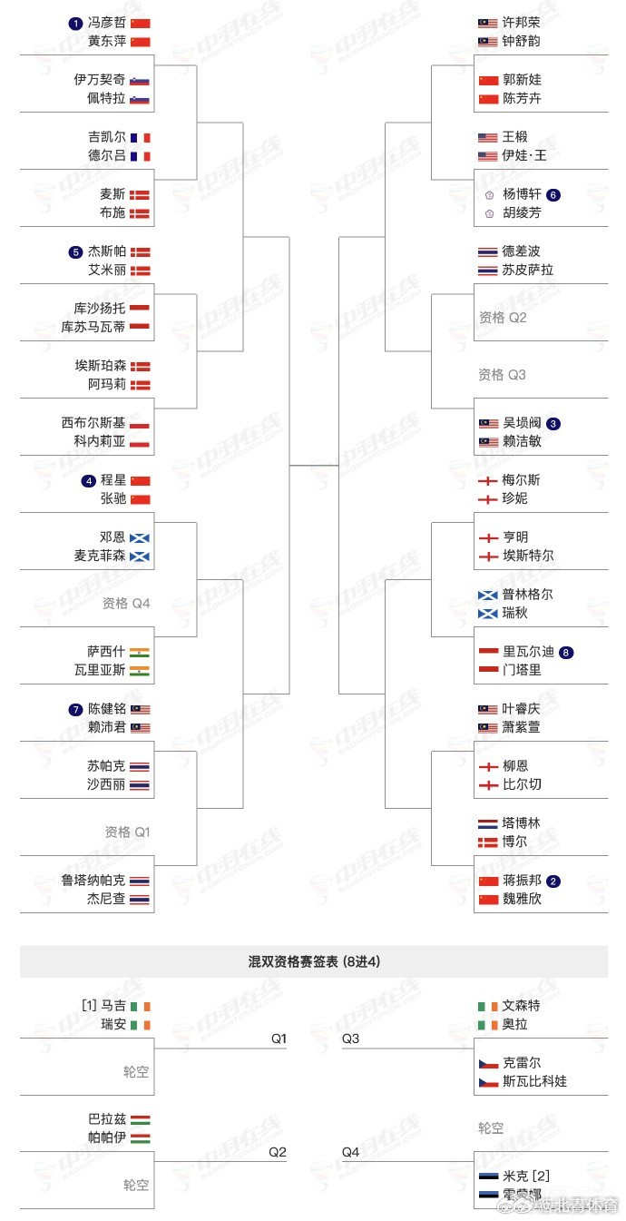 中国队各单项签表对阵如下