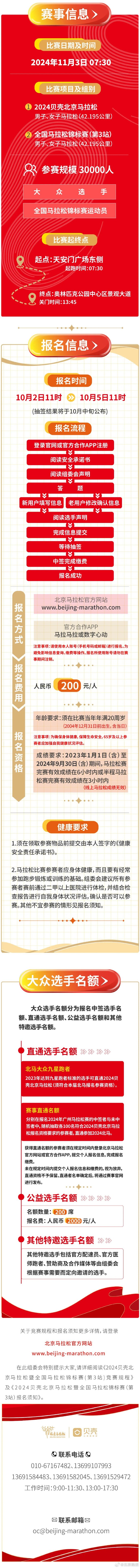 2024北京马拉松11月3日开跑,今日11时正式启动报名尼古拉约基奇 @懂球帝2024-10-02 11:22据官方消息,2024北京马拉松11月3日开跑,10月2日11时正式启动报名。北京马拉松跑步路线将从天安门广场出发,在国家体育场冲线,全程42.195公里。北京马拉松参赛规模为三万人,11月3日早07:30起跑。报名时间为今日11点开始,10月5日11点结束。展开更多