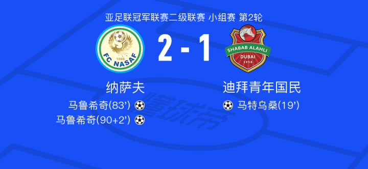 纳萨夫2-1逆转迪拜青年国民,马鲁希奇独中两元