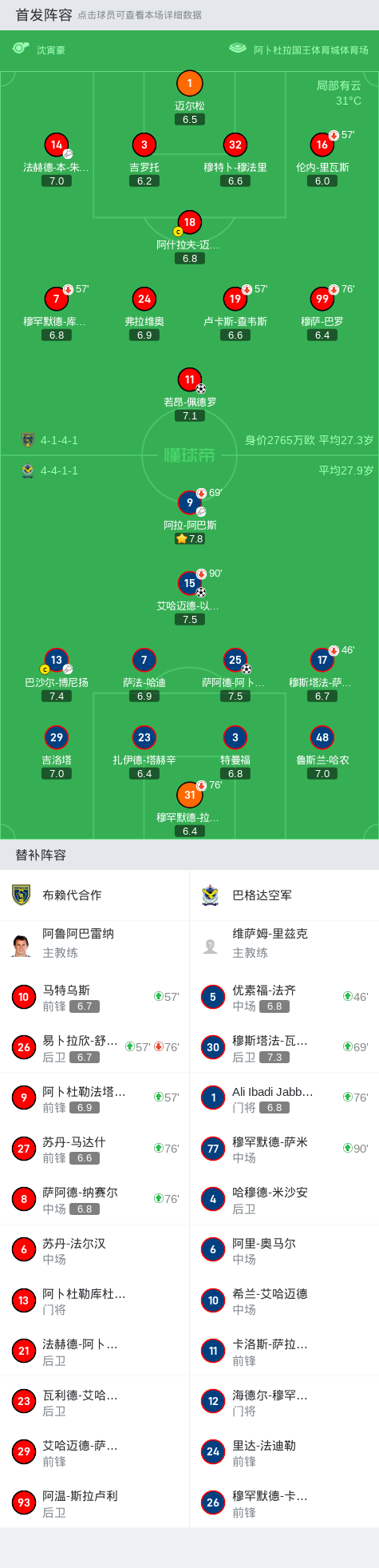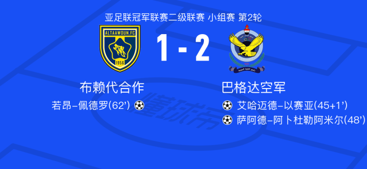 巴格达空军2-1布赖代合作,萨阿德-阿卜杜勒阿米尔、艾哈迈德-以赛亚破门