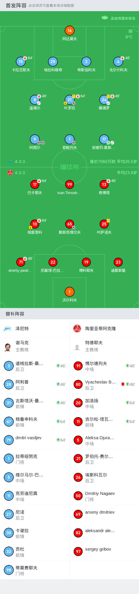 第81分钟,陶里亚蒂阿克隆球队Vyacheslav Bardybakhin吃到红牌。