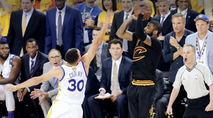 2016年NBA总决赛,当时系列赛骑士队和金州勇士队打成3-3平。在关键的抢七大战最后几分钟,骑士队和勇士队已经连续12次投篮不中,自末节4分39秒后两队均未得分。当时,欧文利用和JR-史密斯的挡拆,换防到库里,命中这记关键三分。