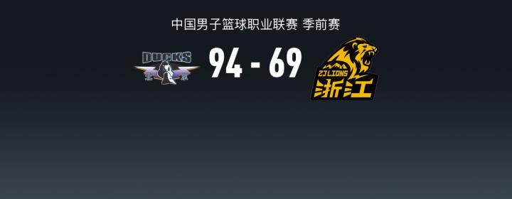 CBA季前赛,北京北汽以94-69大胜广厦。北京北汽外援奥莫特18分3板6助,迎来加盟后首秀的周琦投篮6中5拿到14分,曾凡博15分2板2助;浙江广厦巴里-布朗16分,赵嘉仁18分,胡金秋第一节眼角受伤后退出比赛,孙铭徽没有出战。