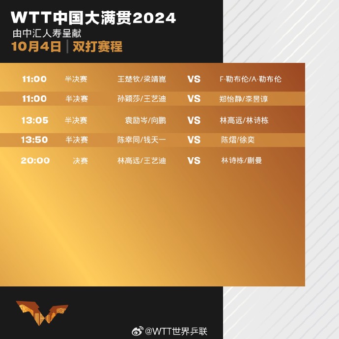 WTT中国大满贯今日综述:向鹏力克勒布伦;混双国乒会师决赛