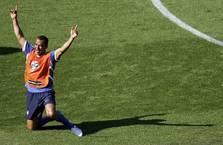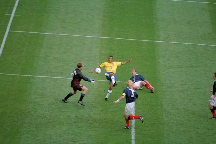 巴西队在前场有由罗纳尔多、里瓦尔多和贝贝托组成的三叉戟来冲锋陷阵,但在世界杯正赛伊始,球队依靠的是球场另外一端的卡福。在法兰西大球场猛烈的阳光下,巴西队一度与苏格兰队战成1-1平。正是卡福的插上突破搅乱了苏格兰人的后防线,在对方球员的“帮助”下,卡福制造了一粒乌龙球,最终帮助巴西队旗开得胜(译注:当时卡福从右路插上,在禁区得球后,他的射门打在了对方门将吉姆-雷顿的胸部,皮球在弹到回追的博伊德肩膀后戏剧性地飞入球网)。尽管当时卡福的名字出现在了得分记录上,而这也可能是他第一粒也是唯一一粒世界杯进球,裁判最终将这个球认定为乌龙球。但无论怎样,这对于这位右边后卫来说都是一个超乎现实的时刻——巴西队依靠他们的后防球员打开局面并获得胜利。