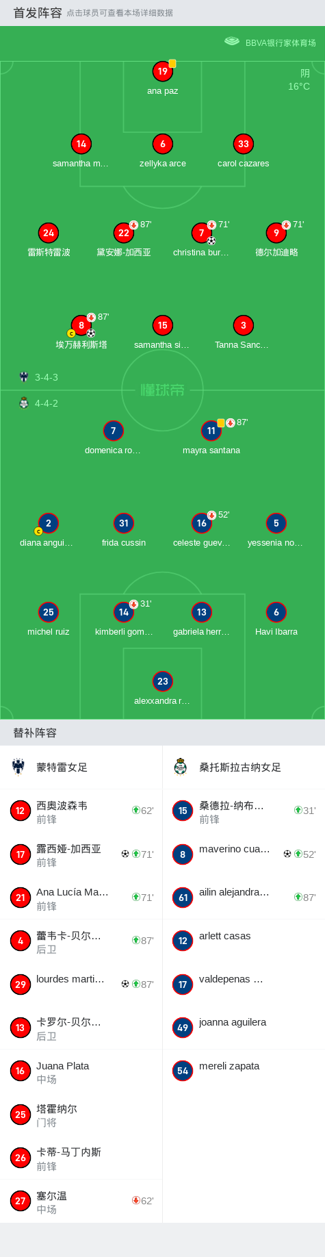 蒙特雷女足4-1大胜拉古纳女足,lourdes martinez、露西娅-加西亚建功