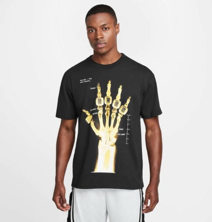 这双Kobe 5 Protro "X-Ray"的设计灵感来源于早年科比亲自参与设计的一款短袖,印有科比带有五枚冠军戒指的手部X光。