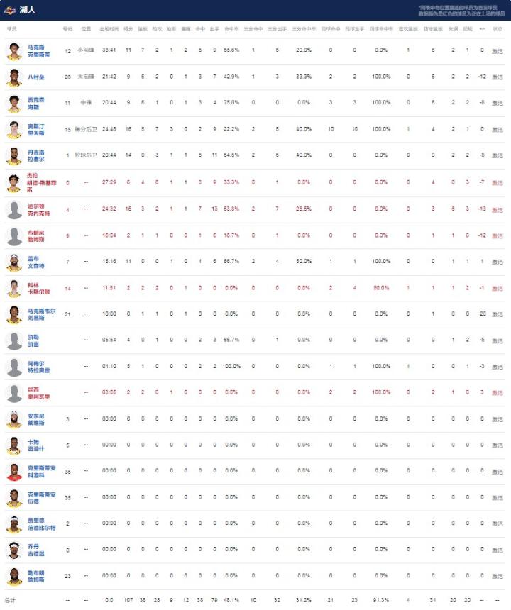 洛杉矶湖人里夫斯16分5板7助3断,多尔顿-克内克特16分3板2助1断1帽,拉塞尔14分3助1断1帽;
