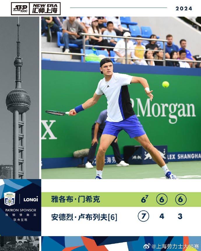 北京时间10月5日,ATP1000上海大师赛男单第二轮,6号种子、去年赛会亚军卢布列夫以1-2遭19岁捷克小将门希克逆转,爆冷无缘男单32强。