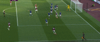 第37分钟,格里夫斯头球攻门,皮球偏出底线