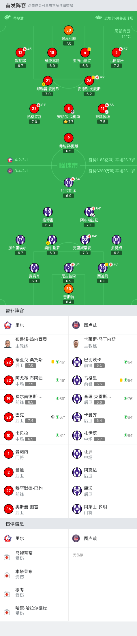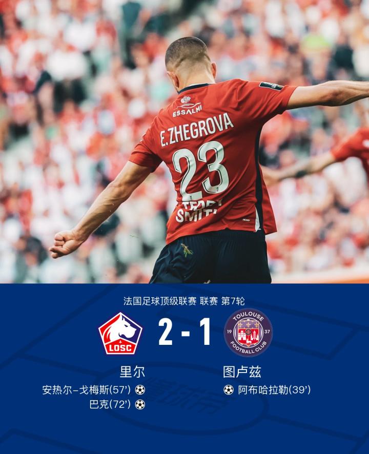 里尔2-1逆转图卢兹迎连胜,安热尔-戈梅斯、巴克建功