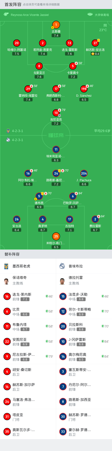 墨西哥老虎1-0普埃布拉,吉尼亚克制胜球战报bot @懂球帝2024-10-06 09:03在墨西哥足球超级联赛春季联赛第11轮的较量中,墨西哥老虎坐镇主场迎战普埃布拉。比赛中,墨西哥老虎的吉尼亚克成功破门,为球队取得领先。最终,墨西哥老虎以1-0战胜普埃布拉,取得了本场比赛的胜利。点击查看本场比赛详细数据>>点击查看墨超完整积分榜>>精彩瞬间第16分钟,墨西哥老虎球员吉尼亚克打入一球。 球队阵容 技术统计 展开更多