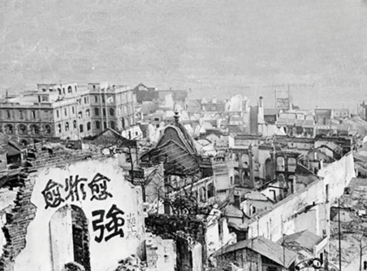 迁都重庆使日本“三个月灭亡中国”的企图落空。1938年起,气急败坏的日军对重庆进行“无差别轰炸”,出动近万架飞机于市中心投放万余枚炸弹,致30万民众罹難。在李子坝抗战遗址博物馆中,有一组大轰炸照片,遇难者尸体堆积在坡坎上,街道被血染红。这样的轰炸伴随着重庆度过了8年抗战岁月。日军的暴行,并没有将重庆人击垮,人们反而在轰炸后的残垣断壁上写下了“愈炸愈强”四个大字!
